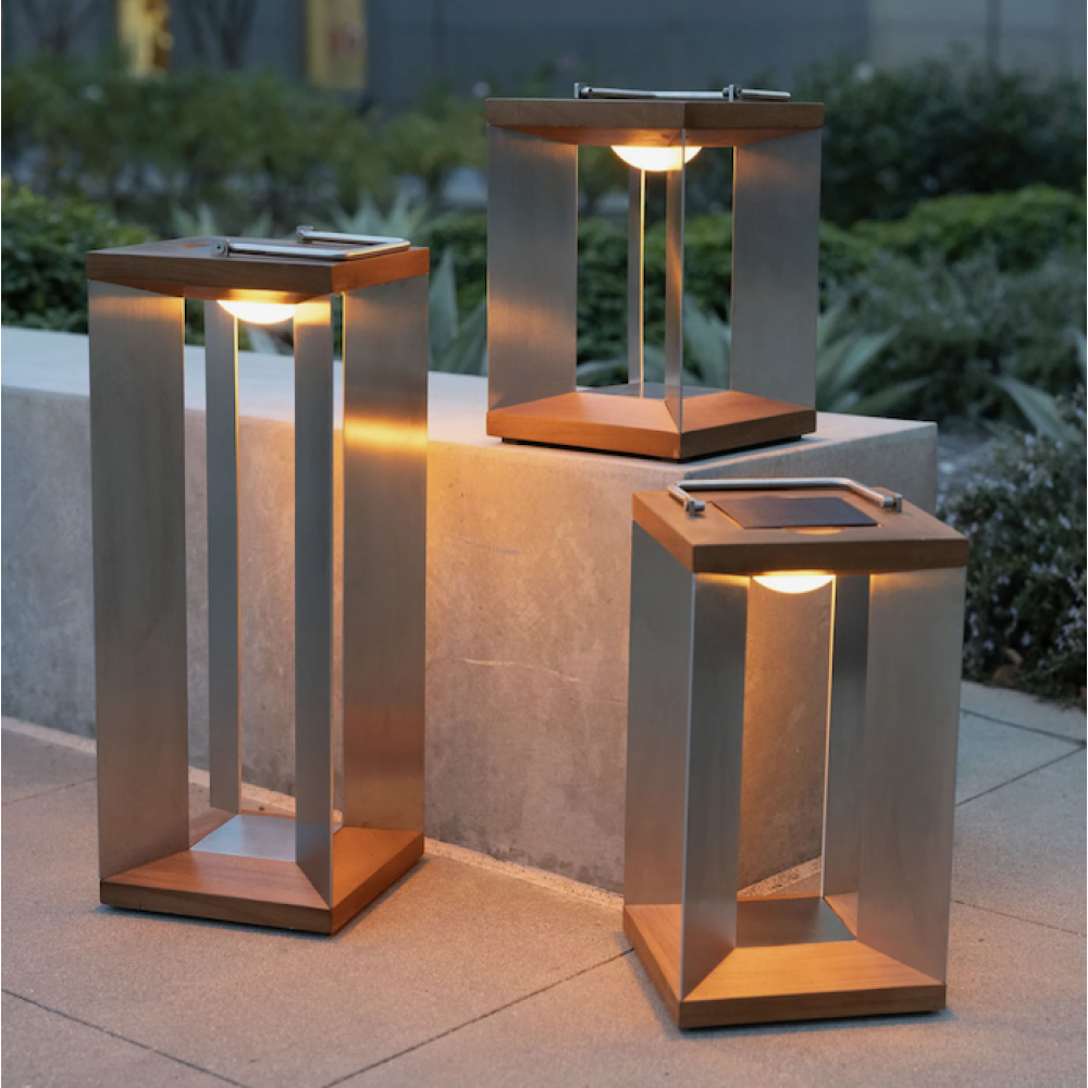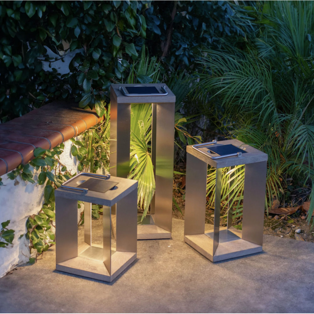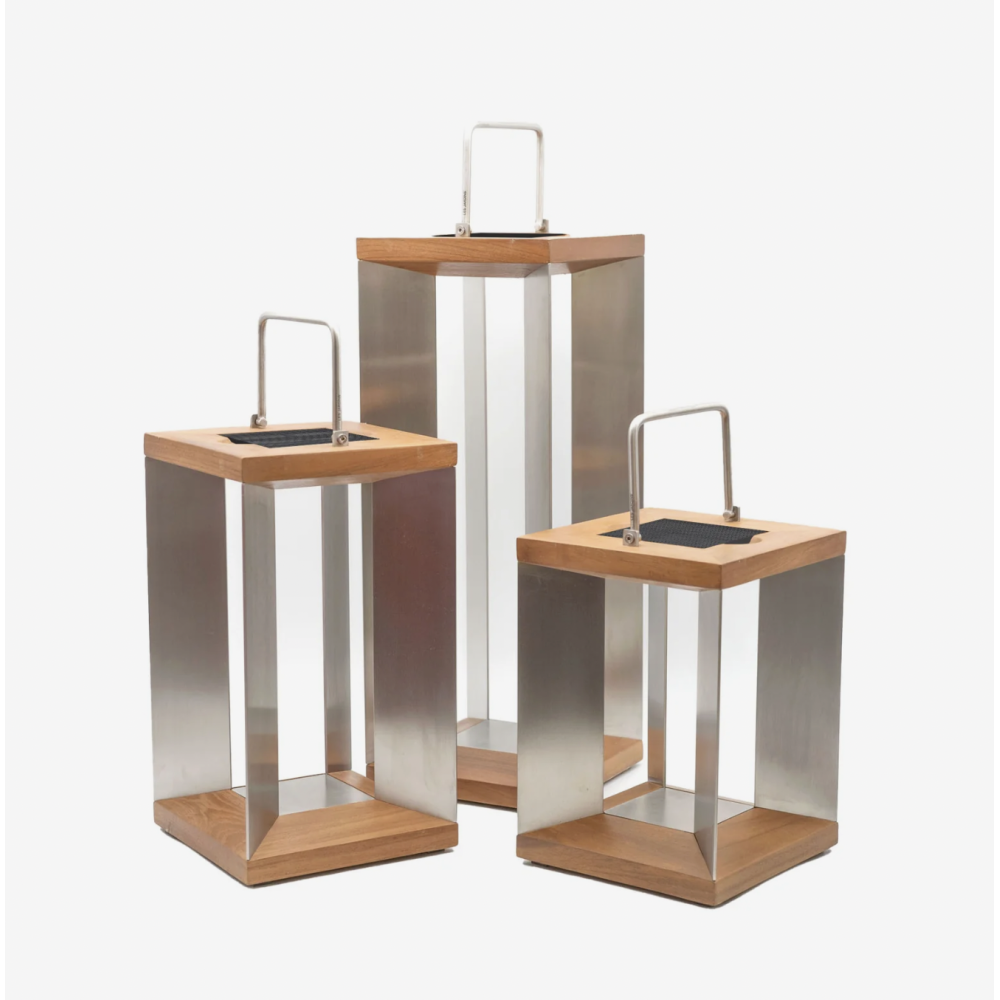 The BLADE collection tops our list of best sellers with its modern design and sleek blades framed by Indonesian teak wood. The blades are available in aluminum with a black or white powder coated finish or our most popular stainless steel. Renewable solar lighting has been elevated to a whole new level of elegance and high-quality. Engineered to perfection as a portable lantern, yet perfect for hardscape fixtures. Aerodynamically designed to resist winds, withstand the elements, and its substantial weight ensures stability. Available in three sizes