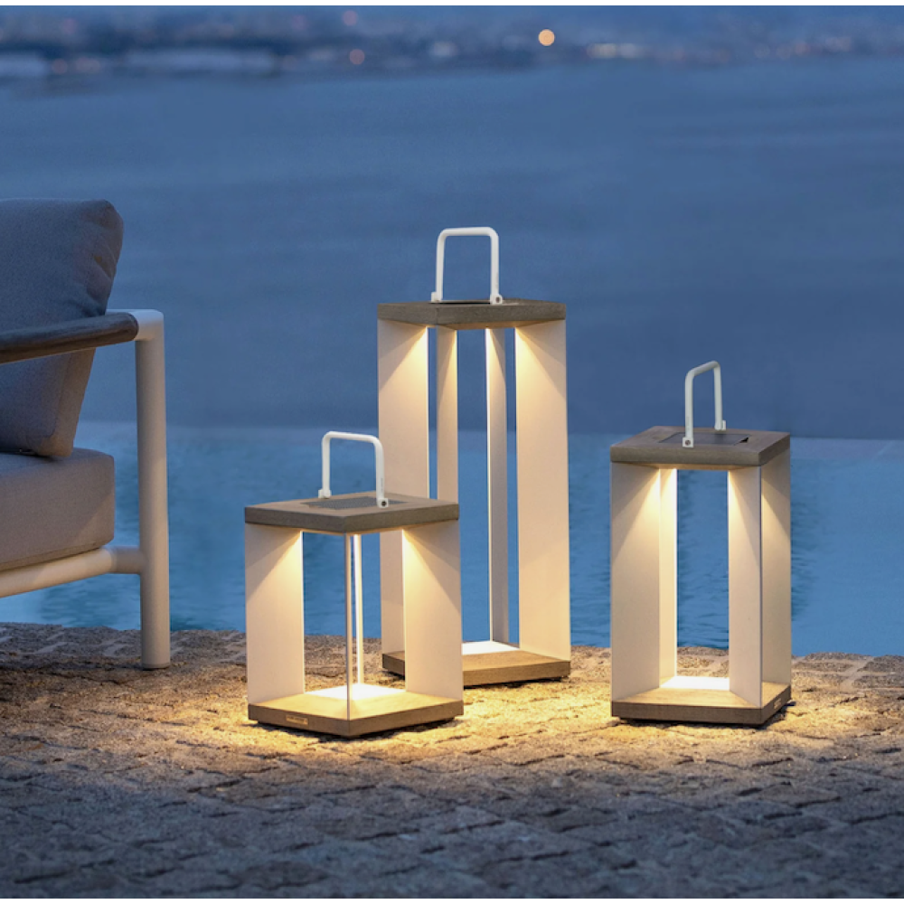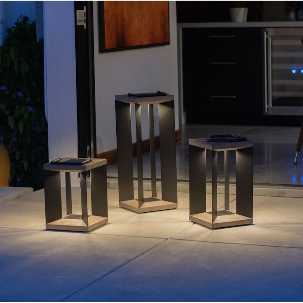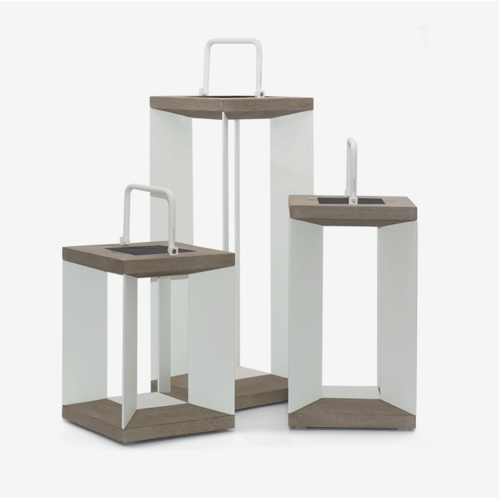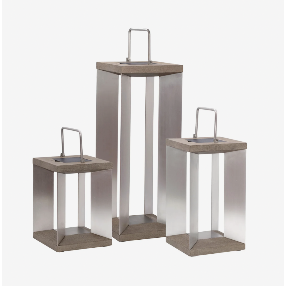 The BLADE collection tops our list of best sellers with its modern design and sleek blades framed by Indonesian teak wood. The blades are available in aluminum with a black or white powder coated finish or our most popular stainless steel. Renewable solar lighting has been elevated to a whole new level of elegance and high-quality. Engineered to perfection as a portable lantern, yet perfect for hardscape fixtures. Aerodynamically designed to resist winds, withstand the elements, and its substantial weight ensures stability. Available in three sizes