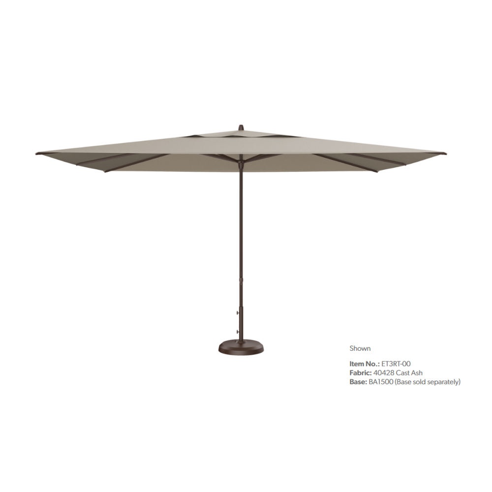 It's back and better than ever! The Treasure Garden 10x13 foot rectangular EZ Track umbrella. The 10x13 foot EZ track umbrella provides 130 square feet of shade. This easy opening EZ Track umbrella operates with a simple slide of the knob to open and close effortlessly. Its telescoping canopy closes over furniture, making it perfect for both residential and commercial use. Experience the future of outdoor living.
