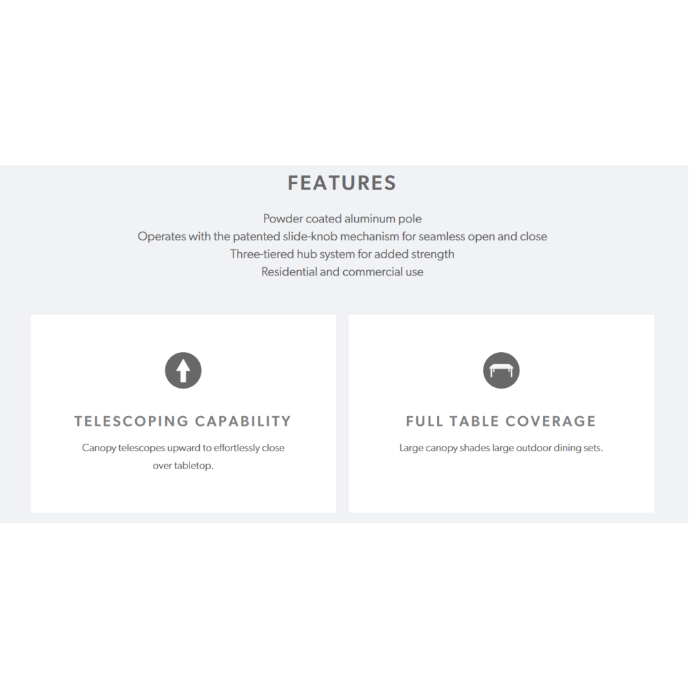 - Optimal shade coverage up to 130 square feet